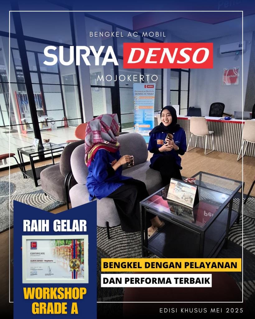 Bengkel AC Mobil Surya Denso Mojokerto berhasil meraih Gelar Workshop Grade A, sebuah predikat bergengsi yang diberikan kepada bengkel dengan standar pelayanan, kualitas kerja, dan performa terbaik.